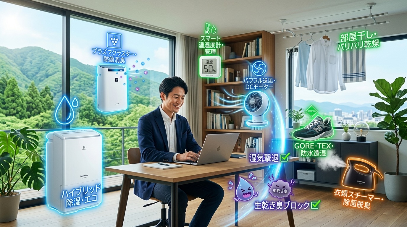 この記事では、雨の日でも靴下をサラサラに保ち、お気に入りの服をノーダメージで乾燥させ、部屋の環境を常に最適化する「最強の室内環境」の構築方法を公開します。